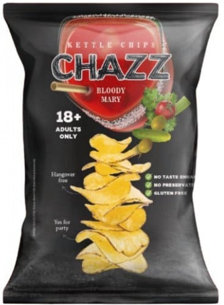 Pochutnejte si na výborných chipsech s originální příchutí blood mary cocktail od litevské značky Chazz, která se inspirovala tradičním pokrmem litevské, polské a běloruské kuchyně. Vyzkoušejte tuto netradiční chuť chipsů ať už jste kdekoliv.