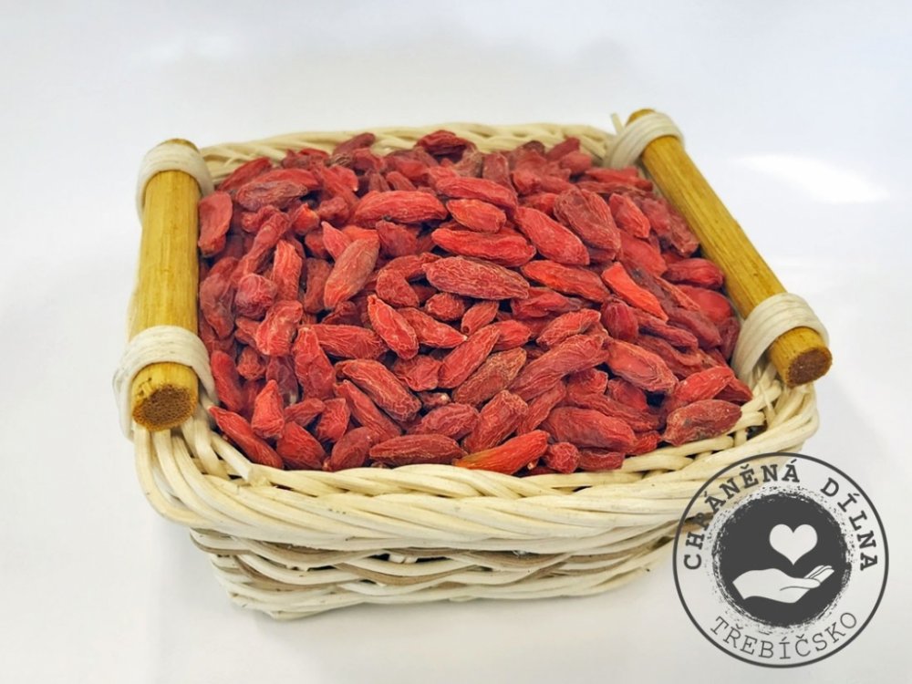 Goji, plody keře kustovnice čínské, se právem řadí mezi superpotraviny dnešní doby. Mají blahodárný vliv na náš organismus nejen proto, že obsahují obrovské množství vitamínu C, dále minerální látky a další vitamíny. Goji si oblíbíte kvůli její chuti, která připomíná višně, brusinku nebo šípek. Skladujte v teplotě nejvýše 22 °C a relativní vlhkosti max. 70 %. Země původu: ČínaVÝŽIVOVÉ ÚDAJE na 100...