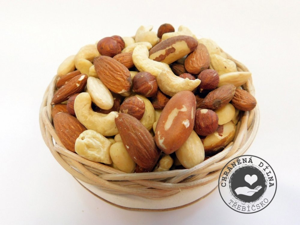 Kombinace různých druhů ořechů a sušeného ovoce vytvoří opravdovou energetickou bombu, která dokáže do těla dodat v krátké době ztracenou energii i značné množství minerálních látek. Trvanlivost 12 měsíců od data výroby. Země původu: Česká republika Skladujte na suchém a temném místě.VÝŽIVOVÉ ÚDAJE NA 100 g: Energetická hodnota: 1 791 kJKalorie: 427 kcalTuky: 23,5 gz toho nasycené mastné kyseliny: 3,4 gSacharidy: 44 gz toho cukry: 26,2 gVláknina: 4,3 gBílkoviny: 8,1 gSůl: 0,1 g