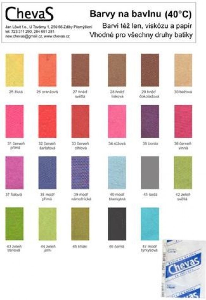 Obarvenou látku vymácháme a následně ustálíme barvu ve fixačním prostředku Chevas fix. ...