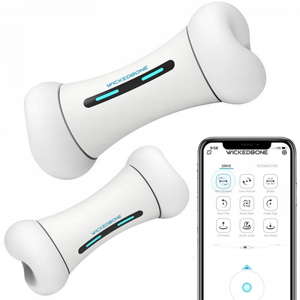 Výrobek od společnosti Cheerble nabízí 3 režimy a 9 různých pohybů, které nastavíte prostřednictvím aplikace. Wickedbone se může otáčet, skákat atd. Jediné, co musíte udělat, je spárovat svůj chytrý telefon s hračkou. Pohyby lze také kombinovat v závislosti na potřebách vašeho mazlíčka. Aplikace funguje se systémy Android a iOS.