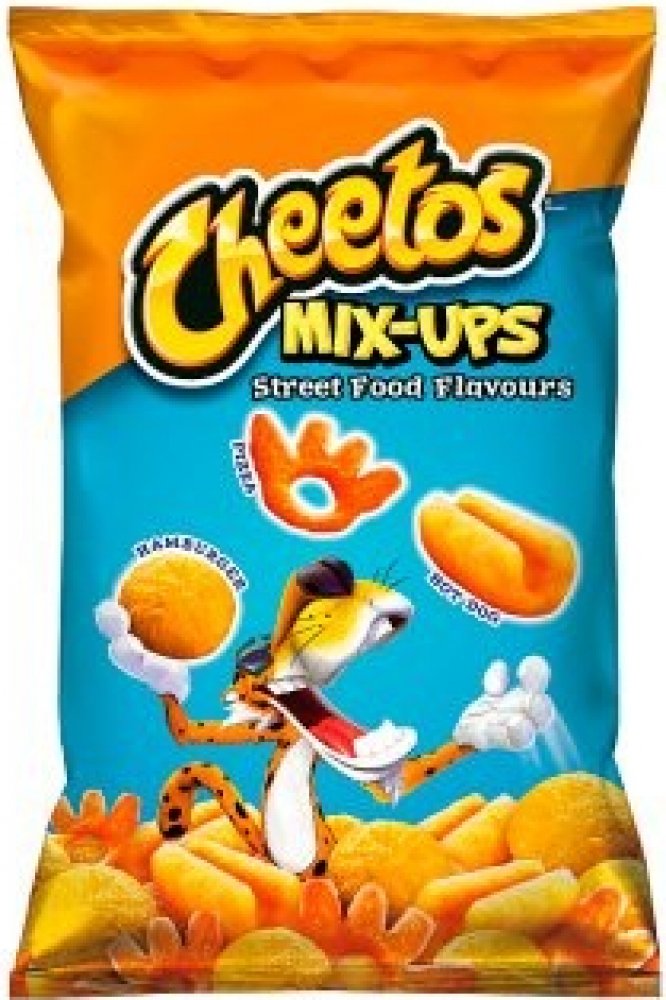 Cena se může v jednotlivých regionech lišit. -- Rozbal to se třemi příchutěmi v každém balení nových Cheetos Mix-ups! Cheetos Mix-Ups Street Food jsou hravou směsí kukuřičných křupek s příchutí pizzy, párku v rohlíku a hamburgeru. Cheetos, pořádná porce zábavy. O VÝROBCI Skupina KMV je primárním výrobcem a distributorem značek PepsiCo. Společně s nealkoholickými nápoji distribuuje slané a sladké P...