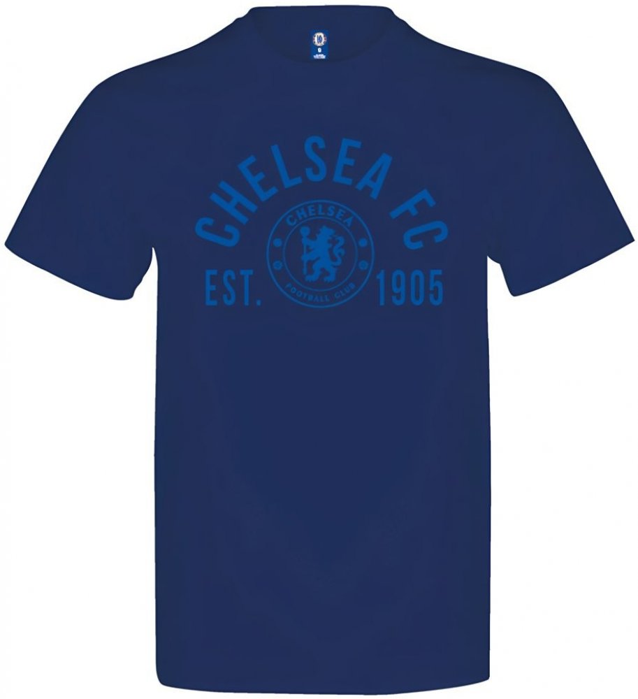 Tričko Chelsea FC v tmavě modré barvě. Znak klubu na hrudi s názvem a rokem v kontrastní světle modré barvě. Vyrobeno z vysoce kvalitní 100% bavlny, která zaručuje maximální pohodlí a příjemný pocit při nošení. Tričko má kulatý výstřih a krátké rukávy. Ideální pro každodenní nošení.