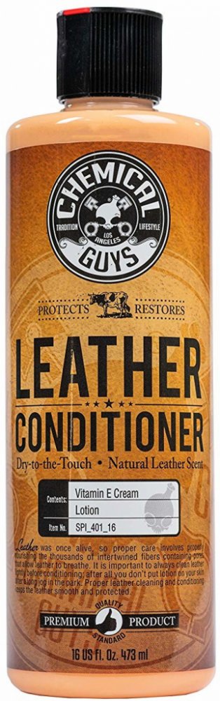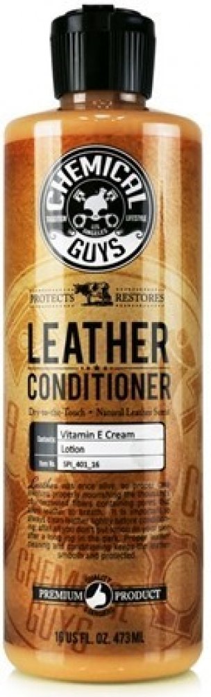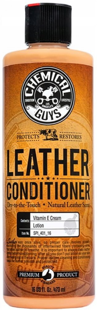Velmi kvalitní mléko na kůži Chemical Guys Leather Conditioner 473ml. Chemical Guys Leather Conditioner je navržen tak, aby vyživoval a obnovoval kožené povrchy, funguje také na koženkových a umělých kožených površích. Ochraňuje je proti UV záření, praskání, vyblednutí a změně barvy způsobené škodlivými slunečními paprsky, odstraňuje přebytečné nečistoty a mastnotu. Po nanesení obnoví vůni přírodní kůže, zabraňuje jejímu vyschnutí, stárnutí a popraskání, a díky proniknutí hluboko do povrchu kůže zjemňuje a změkčuje její strukturu.