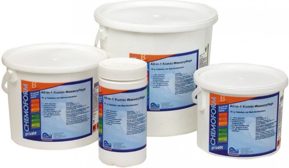 chlórové tablety s vločkovačem a přípravkem proti růstu řas Tablety s několikanásobným účinkem obsahují více jak 80% aktivního chloru, preventivní dávku proti řasám a vločkovací přípravek(pro zvločkování drobných nečistot). Stabilizovaný přípravek proti rychlému uvolňování chloru vlivem působení slunce a tepla, ničí zárodky a bakterie. Velmi pomalé rozpouštění, vhodné zejména pro dlouhodobé a prev...
