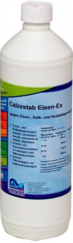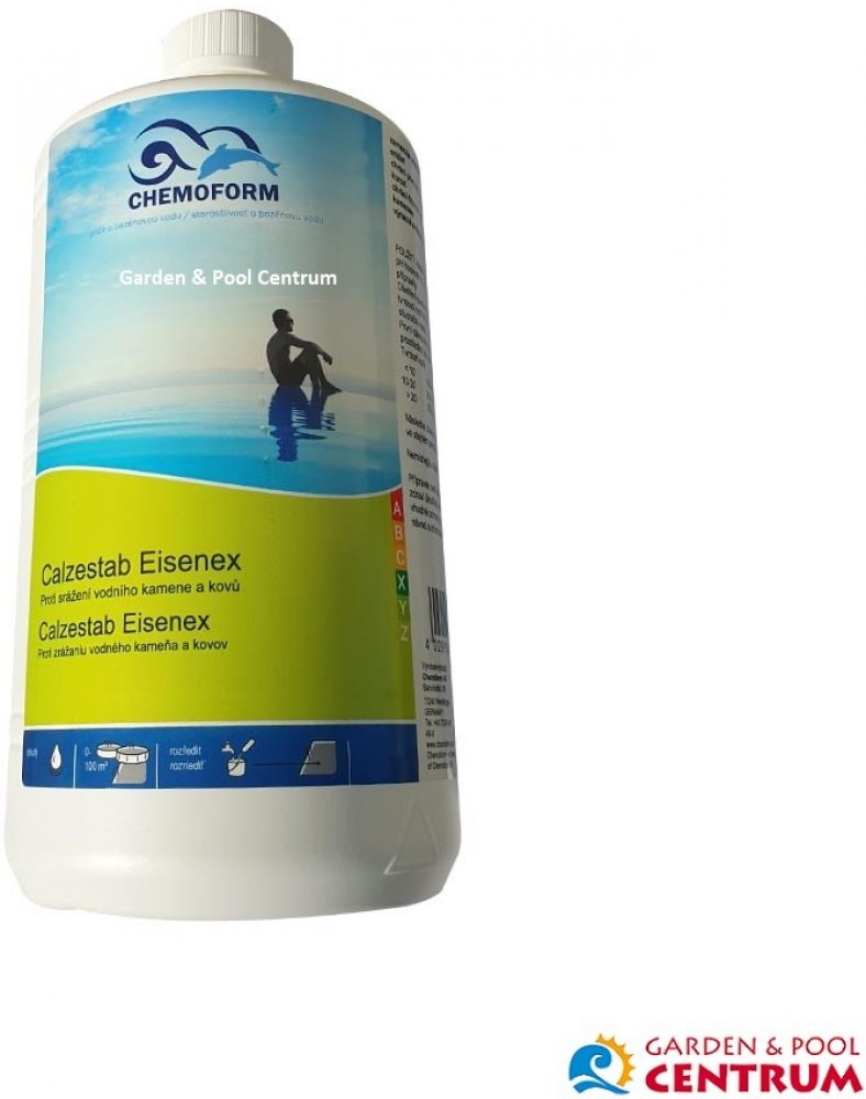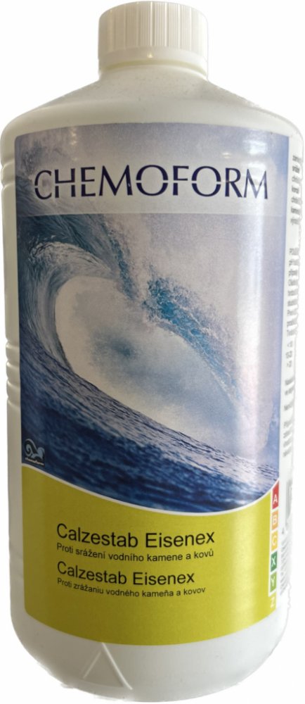 Calzestab Eisenex je tekutý přípravek zabraňující vysrážení vápníku a jiných minerálů obsažených v bazénové vodě. Zabraňuje reakci těchto minerálů s přidávanou bazénovou chemií, snižuje spotřebu bazénové chemie v tvrdé vodě.