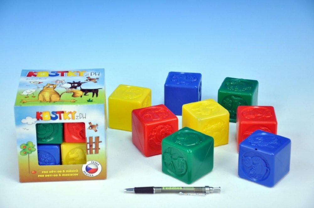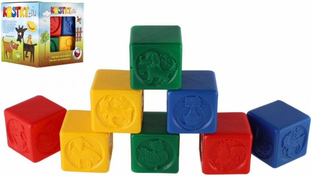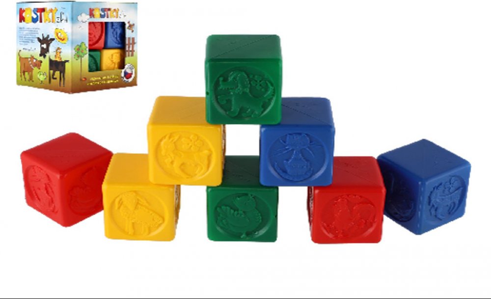 Sada osmi kusů barevných kostek pro nejmenší děti z plastu. Čtyři různé druhy plastových kostek pro děti, které rozvijí motoriku dětí. Hrací plastové kostky potěší všechny malé kluky i holčičky. Čtyři barvy s motivy zvířátek a spousta zábavy pro každý den. Děti mohou postavit hrad podle svých přání. Tato didaktická hračka skvělým způsobem rozvine motoriku a fantazii vašich děti. Zábava pro každý d...