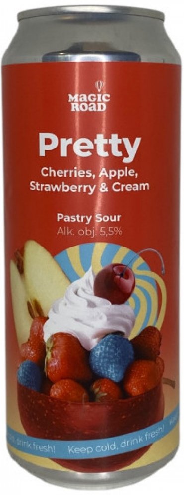 Magic Road Pretty je světlé pivo ve stylu Pastry Sour, které přináší osvěžující kombinaci třešní, jablek, jahod a smetany. Sladkokyselý profil doplňuje jemná krémovost, která zvýrazňuje ovocnou chuť a vytváří dokonale vyvážený celek. Nefiltrované a pasterizované provedení zachovává autentickou chuť použitých surovin. Doporučujeme podávat vychlazené na 8–12 °C.