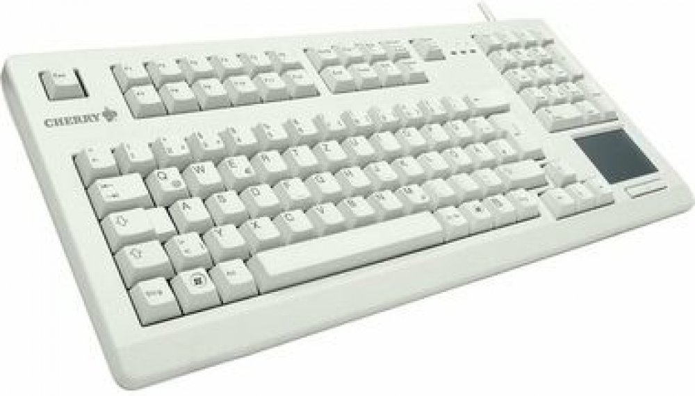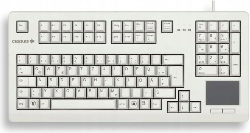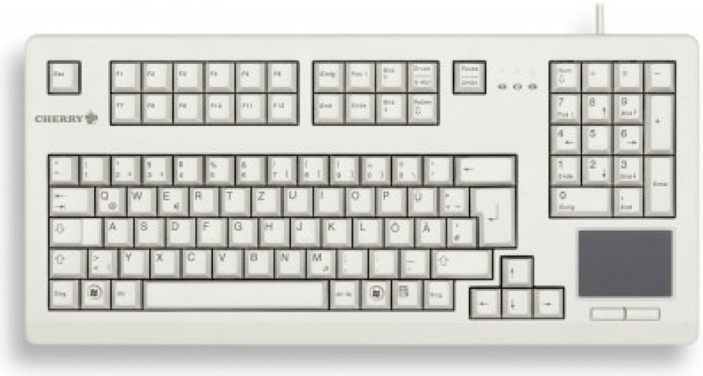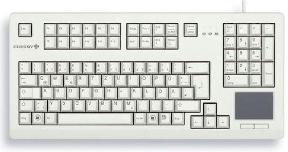 CHERRY TouchBoard G80-11900, německé rozložení, QWERTZ klávesnice, drátová klávesnice, mechanická klávesnice, ML, vestavěný touchpad, úspora místa, ergonomická, světle šedá