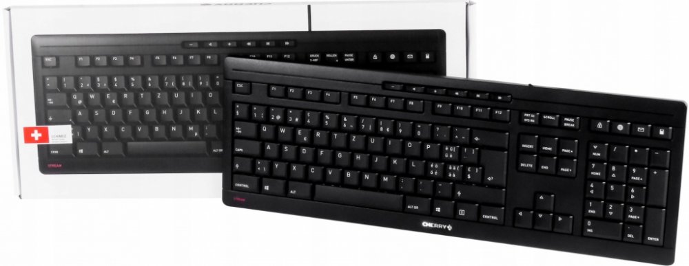 CHERRY představuje nejvyšší standardy spolehlivosti, odolnosti a nesrovnatelného pocitu při psaní. Klávesnice CHERRY STREAM KEYBOARD vylepšuje to, co miliony spokojených uživatelů ocenily již u předchozího modelu. Klasika je pozvednuta do nové doby. Zejména v kancelářském prostředí se vstupní zařízení používají celé hodiny jako každodenní společníci. Právě v této oblasti nastavuje klávesnice STREAM KEYBOARD nová měřítka a má potenciál stát se absolutně oblíbenou klávesnicí. Směs konvenčního designu, nádechu elegance a jednoduchého purismu dělá z klávesnice ideálního společníka pro mnoho vkusů v kanceláři i doma. Díky integrované kovové desce boduje klávesnice STREAM KEYBOARD ideální torzní tuhostí a stabilitou, a to i přes svůj štíhlý design. Dvě opěrné nožičky a osm gumových podložek na spodní straně zajišťují pevný stoj i při skládání a rozkládání. Nesrovnatelný pocit při psaní a nekompromisní přesnost byly vždy spojeny s nůžkovou technologií od společnosti CHERRY. Při vývoji byla zvláštní pozornost věnována hlučnosti při psaní. Ve srovnání s již tak tichým předchozím modelem byla hladina hluku ještě více snížena. Díky tomu je klávesnice první volbou pro kanceláře s mnoha pracovními místy nebo pokud rádi píšete tiše. Pečlivý výběr materiálů zaručuje, že písmena zřetelně vystupují z kláves a vy můžete pracovat bez únavy. Speciální funkcí, která se jinak používá pouze v mnohem vyšších cenových kategoriích, jsou stavové LED diody pro CAPS LOCK, NUM a SCROLL LOCK, které jsou zabudovány přímo do kláves. Červené stavové diody LED vám například na první pohled ukáží, zda je stisknuta klávesa Caps Lock. deset praktických přídavných kláves usnadňuje práci jak v kanceláři, tak při práci s multimediálními aplikacemi. Mezi nimi je i šest běžných kláves pro ovládání multimediálního přehrávače. Funkce prohlížeče, e-mailu a kalkulačky vám navíc kdykoli umožní snadný přístup k často používaným příkazům. Klávesa zámku vybízí uživatele k odhlášení stisknutím tlačítka před opuštěním pracovní stanice. To je neocenitelné zejména v kancelářském prostředí neocenitelné. Navzdory těmto dodatečným klávesám nejsou zapotřebí žádné samostatné ovladače. Klávesnice STREAM KEYBOARD funguje prostřednictvím technologie Plug&Play. Zejména v pracovním prostředí je dodržování směrnic, kvalitativních a ekologických cílů povinné. Tyto cíle jsou také součástí firemní filozofie společnosti CHERRY. Proto jsme se úspěšně ucházeli o ocenění "Modrý anděl". Pečeť GS "Tested Safety" rovněž potvrzuje, že výrobek splňuje všechny příslušné evropské směrnice a předpisy, které mají vztah k ochraně zdraví. Hledáte spolehlivého společníka, který vás nezklame v každodenním pracovním ani soukromém životě? Klávesnice CHERRY STREAM KEYBOARD je ideální volbou.CHERRY STREAM. Tvar klávesnice: plná velikost (100 %). Styl klávesnice: Rovná. Rozhraní zařízení: USB, Spínač klávesnice: Mechanický spínač, Rozložení klávesnice: QWERTY, Počet kláves na klávesnici: 105. Opěrka zápěstí. Délka kabelu: 1,8 m. Doporučené použití: Kancelář. Barva výrobku: černá CHERRY JK-8500. standardní provedení klávesnice. Styl klávesnice Rovný. Rozhraní zařízení USB, Spínač klávesnice Mechanický spínač, Rozložení klávesnice QWERTY, Klávesnice - počet kláves 105. Opěrka zápěstí. Délka kabelu 1,8 m. Doporučené použití Kancelář. Barva výrobku Černá KlávesniceDoporučené použitíKancelářRozhraní zařízeníUSBPřepínač kláves klávesniceMechanickéRozložení klávesniceQWERTZRozložení klávesniceNěmčinaVstupní zařízeníNeFormát klávesniceStandardníNumerická klávesniceAnoKlávesnice - počet kláves105Životnost klávesnice20 milionů znakůKlávesy systému WindowsAnoKlávesové zkratkyAnoPočet klávesových zkratek10Multimediální klávesyAnocURus, VDE-GS, FCCDesignPodsvíceníNeStyl klávesniceRovnáOpěrka zápěstíAnoBarva výrobkuČernáBarva povrchuJednobarevnáOchranaOdolnost proti stříkající voděMyšMyš je součástí dodávkyNeErgonomieDélka kabelu1,8 mNapájeníZdroj napájeníUSBSpotřeba energie20 mASystémové požadavkyPodporuje operační systémy WindowsAnoProvozní podmínkyRozsah provozních teplot0 - 40 °CRozsah skladovacích teplot-20 - 60 °CHmotnost a rozměryRozměry klávesnice (ŠxHxV)463 x 163 x 18 mmHmotnost klávesnice910 gÚdaje o baleníPočet produktů v balení1 kus(y)Šířka balení480 mmHloubka balení210 mmVýška balení24 mmHmotnost balení1,1 kgTyp baleníKrabiceLogistické údajeMnožství na paletě36 kusů