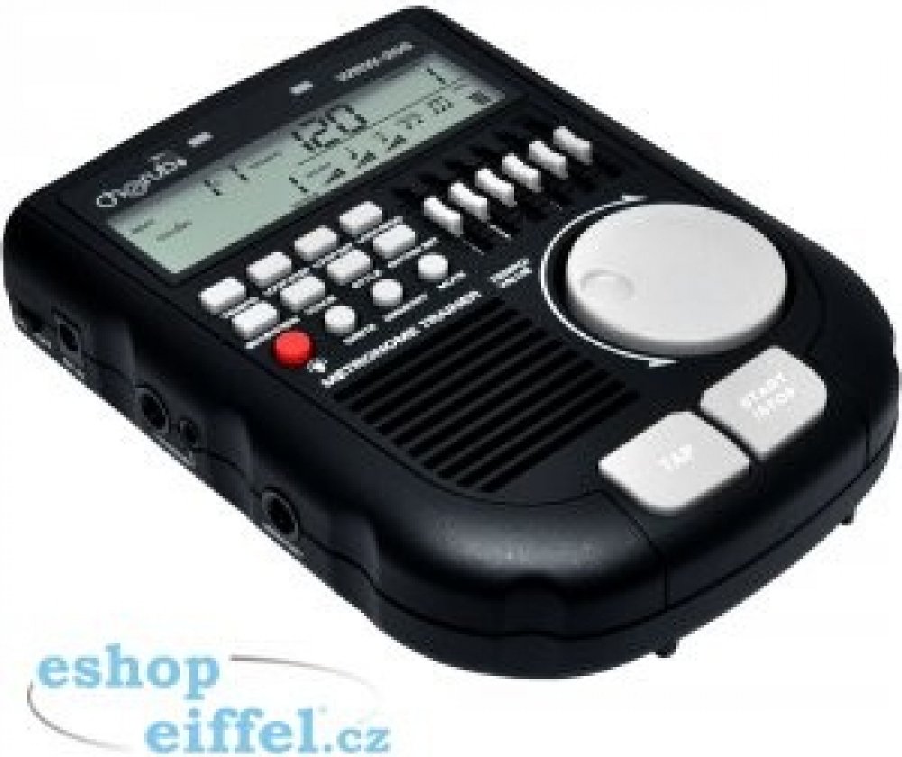 Cherub WRW-206 - digitální, bubenický metronom s velkým LCD displejem a jednoduchým ovládáním.Specifikace: - velký LCD displej (volitelně podsvícený)- velké datakolečko - tap funkce pro rychlé nastavení tempa - několik zvuků metronomu - zvuky bicí soupravy - mixování umožňující vytvoření originálních rytmických stylů (5 tahových potenciometrů + master volume) - funkce přehrávání smyček Loop play v...