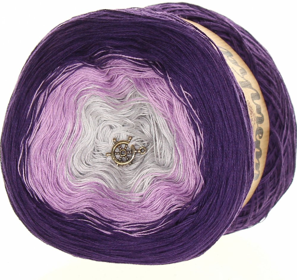 Cherubínka Violet 3-nitka, 1500m, je vícebarevné klubíčko, složené ze 3 nitek vedoucích vedle sebe. Klubíčko má dlouhé barevné přechody a výrobek z něj je velmi příjemný a nadýchaný.