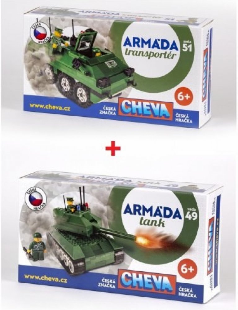 Stavebnice Cheva - se skládají z různých stavebnic, které se dají libovolně kombinovat. Mohou tak vznikat skvělá městačka. Obsahující policie, hasiče, nádraží, benzínovou stanici, taxi službu apod. Tato stavebnice je vhodná pro děti od 6 let. Povzbuzuje dětskou zručnost, podporuje myšlení a kreativitu