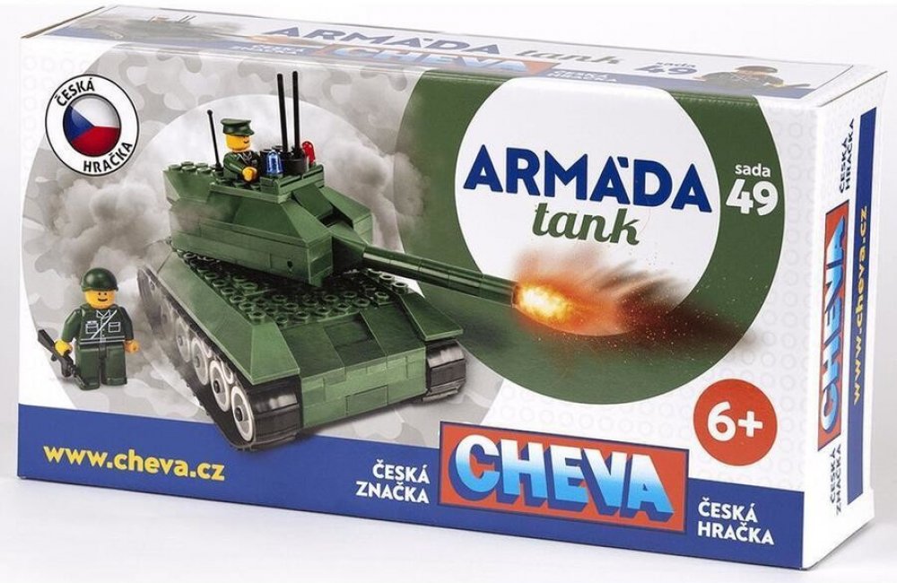 Tato sada stavebnice Cheva tank je jedním z doplňků k základním verzím stavebnice Cheva. Stavebnice Cheva obsahuje jednotlivé kostky a příslušenství, z nichž lze sestavit tanka přenést se tak do světa vrtůlníků, tanků. ...