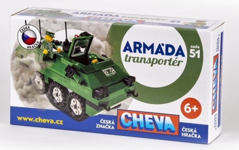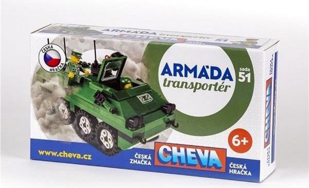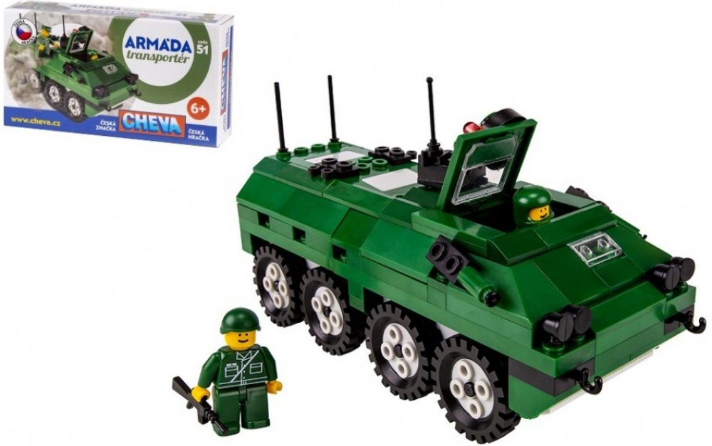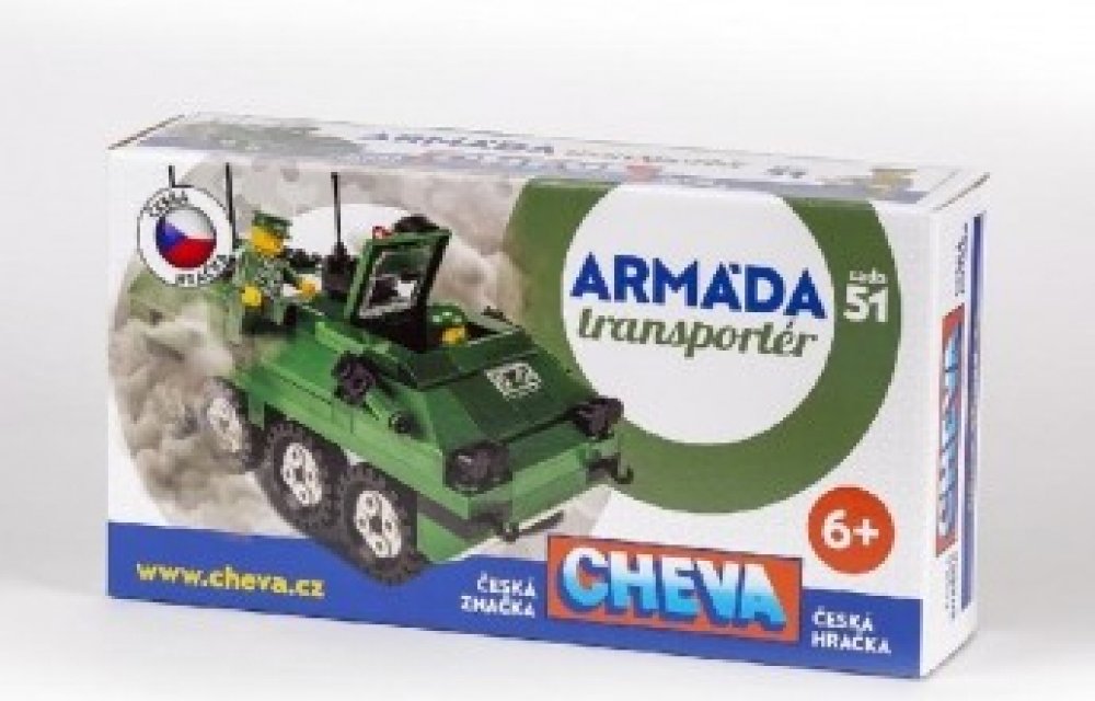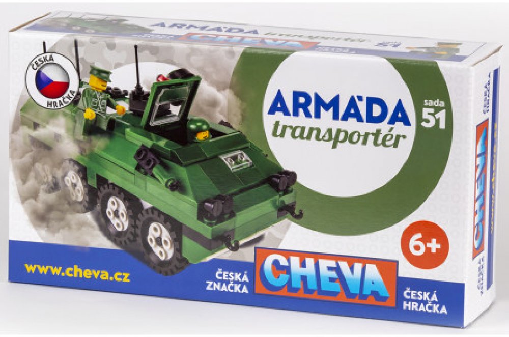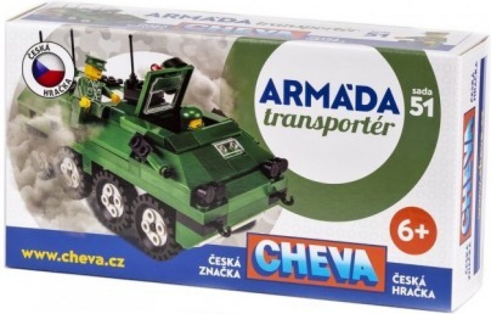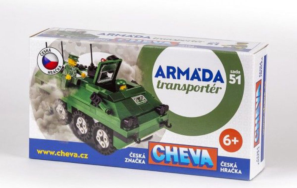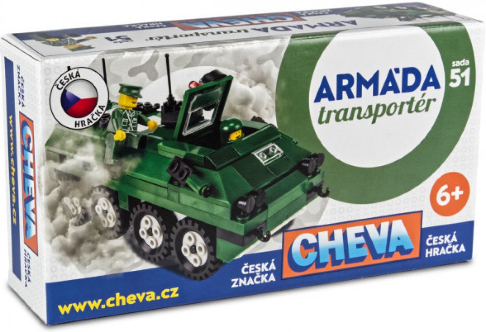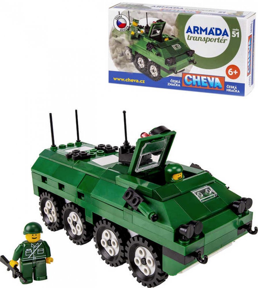 Tato zbrusu nová sada je dalším z doplňků k základním verzím stavebnice Cheva. Balení obsahuje obsahuje 253 dílků, z nichž lze sestavit transportér a přenést se tak do světa tankových bitev. Pomocí čtyř náprav zvládne jakýkoliv terén. Díky velkému úložnému prostoru může převážet i vojenský materiál a postavičky vojáků. Tři otvírací poklopy umožňují lehce umístit postavičky do transportéru. Stavebnice je vyrobena z velmi kvalitního plastu.