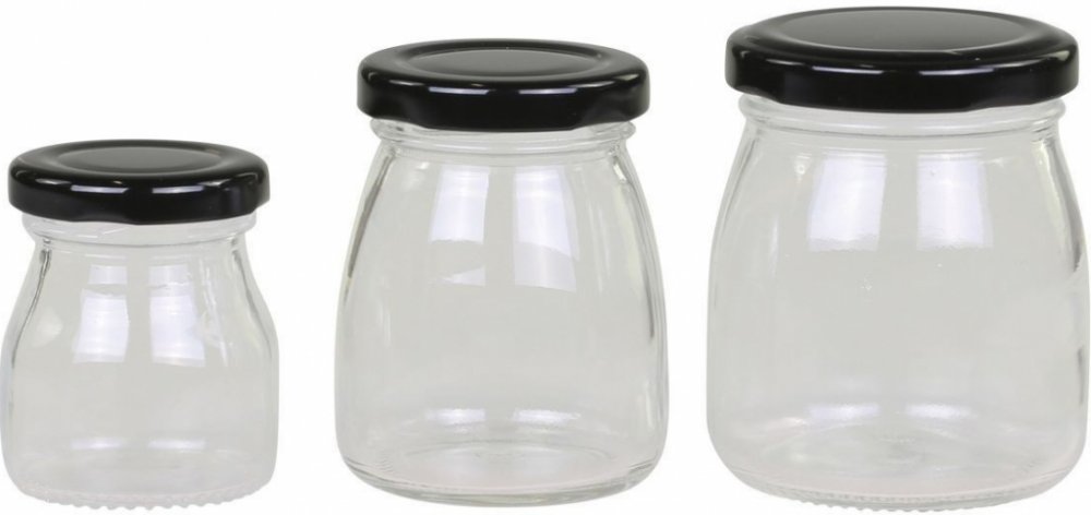 Jejich elegantní design a průhledné sklo vám umožní snadno vidět, co uvnitř je, zatímco černá víčka dodávají každé dóze šmrnc a sofistikovanost.