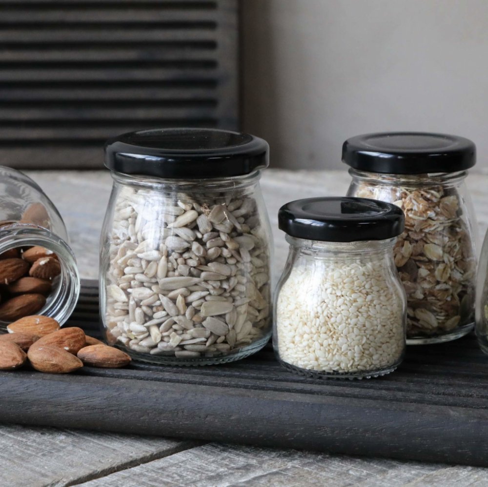 Objevte kouzlo organizace se setem skleněných dóz se stylovými černými víčky, které dokonale ladí jak do moderního, tak do tradičního interiéru.