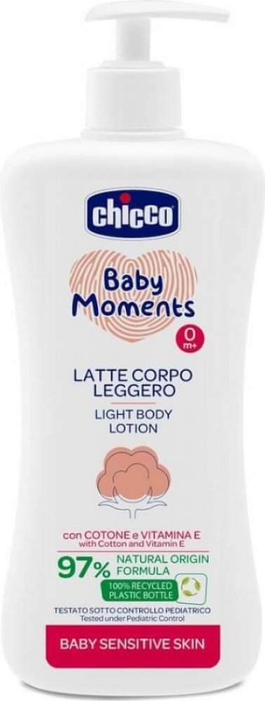 Tělové mléko z řady Chicco Sensitive speciálně navrženo pro péči o citlivou pokožku, která potřebuje jemnější složení, aby si zachovala svou křehkou rovnováhu.