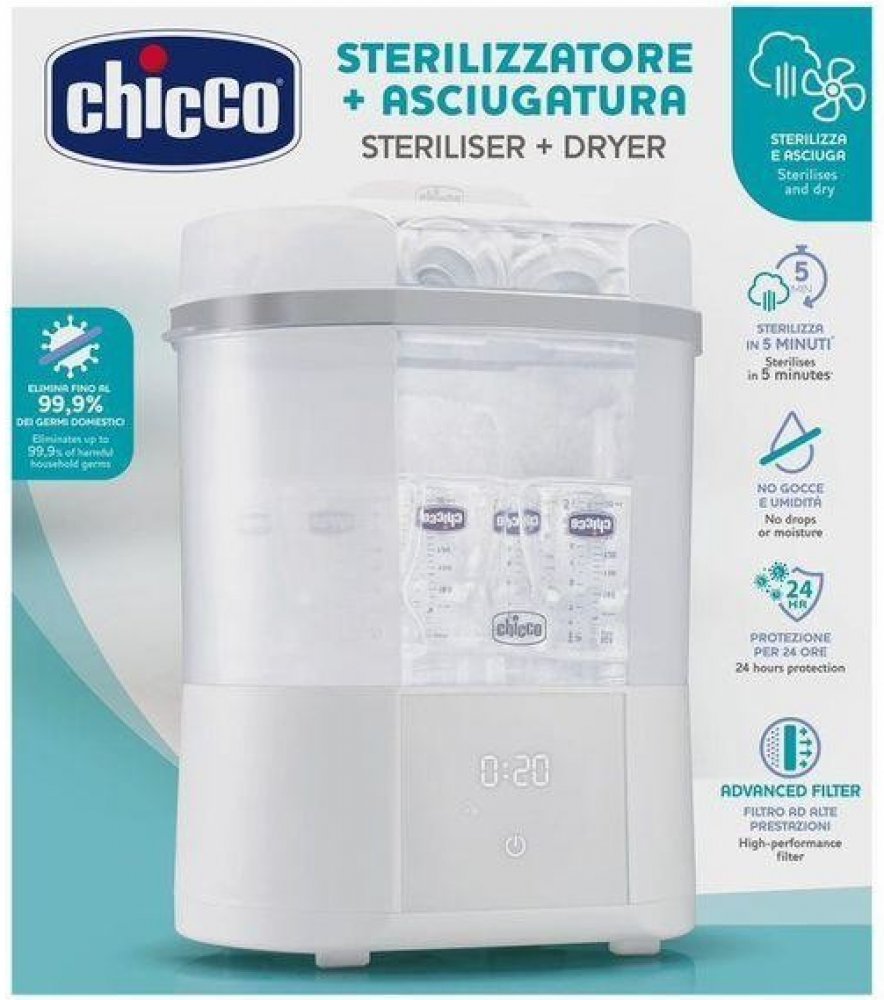 značky Chicco eliminuje 99,9% všech choroboplodných zárodků a sterilizuje