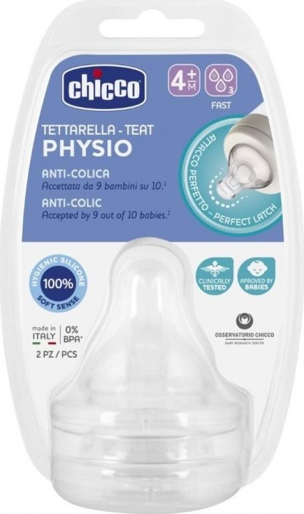 Dudlík na láhev Chicco Perfect 5 ze silikonu má symetrický, prodloužený a zploštělý tvar. Přibližuje se tak nejblíže tvaru matčiny bradavky při sání dítěte. Podporuje tak přirozené peristaltické krmení. Speciální povrchová úprava Soft Sense připomíná dítěti hebkou mateřskou pokožku pro ještě lepší a komfortnější krmení. Anti-kolikový uzávěr na spodní části dudlíku zabraňuje pronikání nadbytečného vzduchu, a tím se snižuje riziko případného refluxu, podráždění a dětské koliky. Děťátku je umožněno hladké a klidné krmení. Dudlík je kompatibilní s láhvemi Chicco Perfect 5 a Chicco Well-being. - balení obsahuje 2 ks - doporučený věk: 4+ měs. POZOR!- Nepřetržité a dlouhodobé sání tekutin způsobuje zubní kaz. - Před krmením vždy zkontrolujte teplotu jídla. - Nepoužívat komponenty mimo dosah dětí. .Dítě lze udusit. nikdy nepoužívejte jako dudlík. - Tento výrobek používejte vždy pod dohledem dospělé osoby. Kontakt dodavatele: ARTSANA SPA Via S. Catelli 1 - 22070, Grandate (CO), Italy, www.chicco.com, +39 800 188 1259