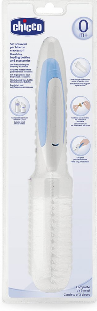 Kartáček Chicco vám usnadní mytí kojeneckých lahví a zajistí jejich dokonalou čistotu. Hygienické nylonové štětinky jsou vhodné pro všechny typy lahví a nepoškodí jejich povrch. Kartáč odstraňuje mastnotu i zbytky jídla. V jeho rukojeti se nachází i menší kartáček Chicco na čistění drobných věcí, jako je třeba dudlík. A součástí jsou i kleště pro uchopení součástek lahve po její sterilizaci. Klíčové vlastnosti kartáče na lahve Chicco, set Set pro hygienickou čistotu kojenecké lahve, dudlíku a dalších pomůcek Kartáč Chicco má nylonové štětiny vhodné pro všechny typy lahví Nepoškrábe povrch lahve a odstraňuje mastnotu V rukojeti kartáče Chicco je umístěn i menší kartáček a kleště