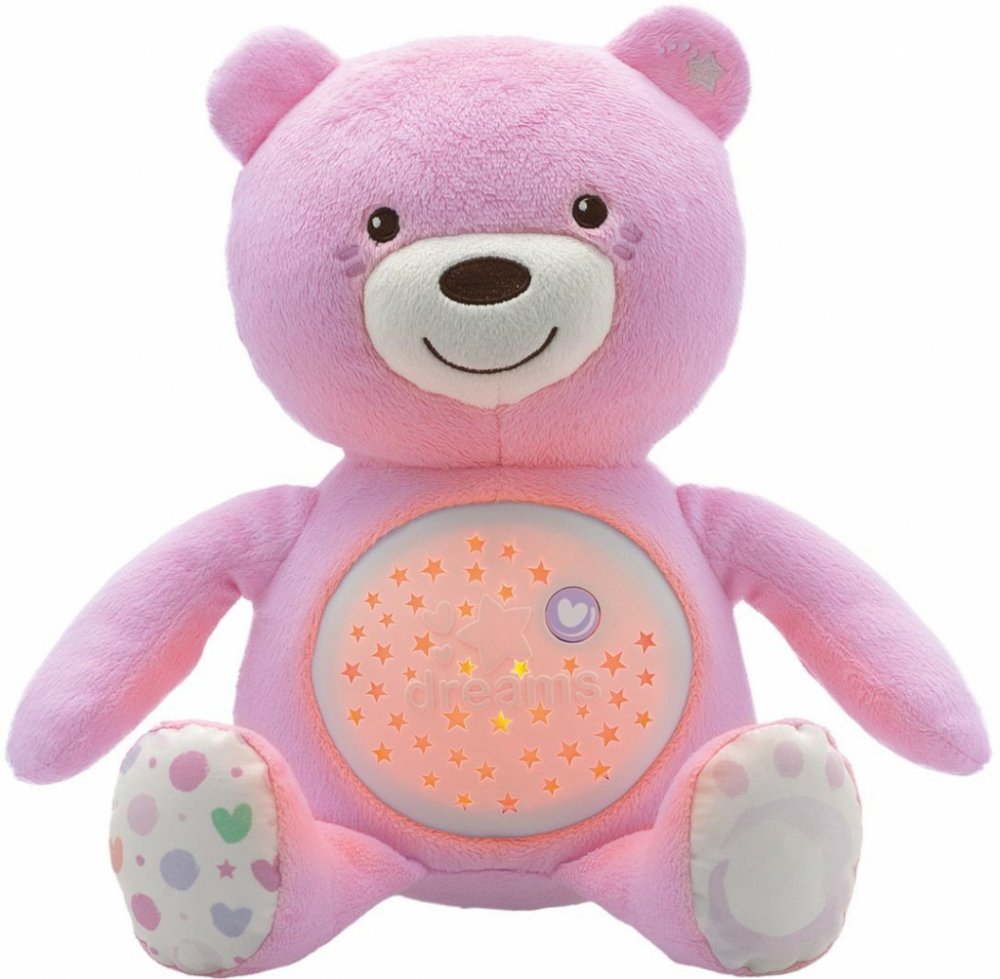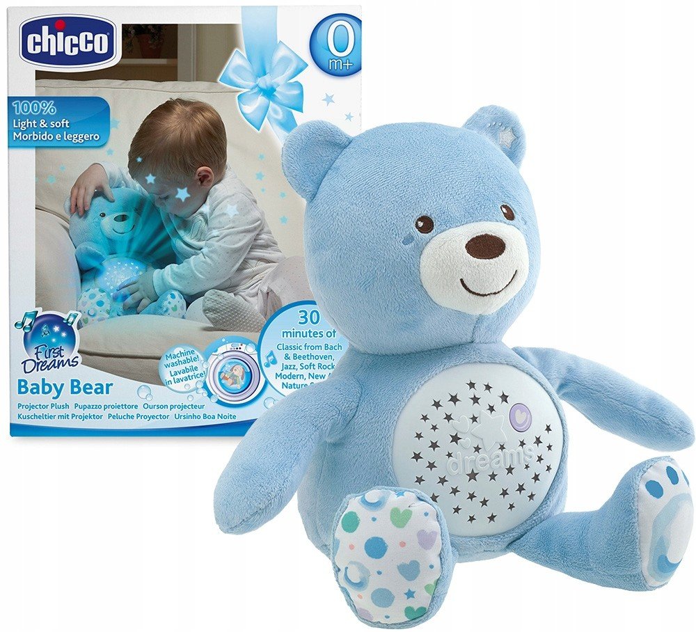 Plyšový medvídek s projektorem Baby Bear First Dreams bude tím nejlepším kamarádem vašeho děťátka ve dne i během uspávání. Baby Bear je hračka, která spojuje heboučký plyš, jemné noční světlo s projekcí a relaxační melodie.