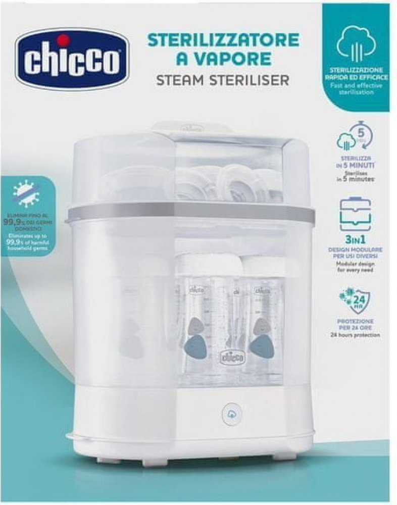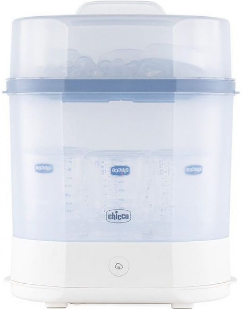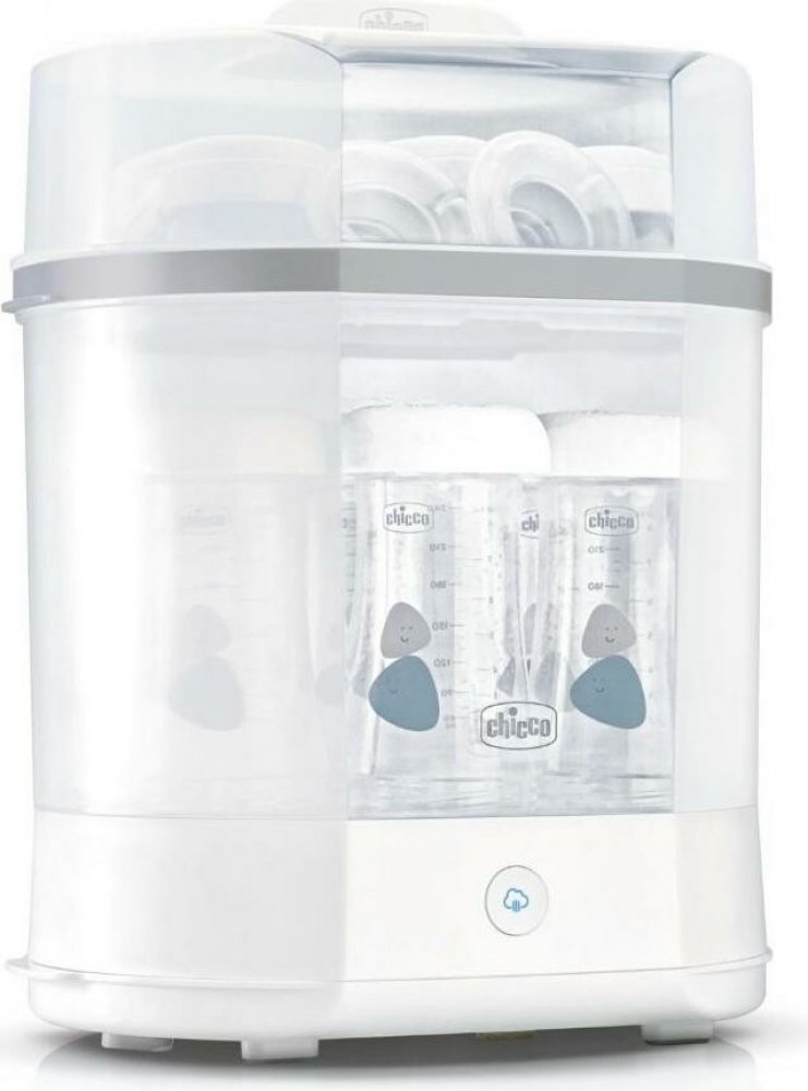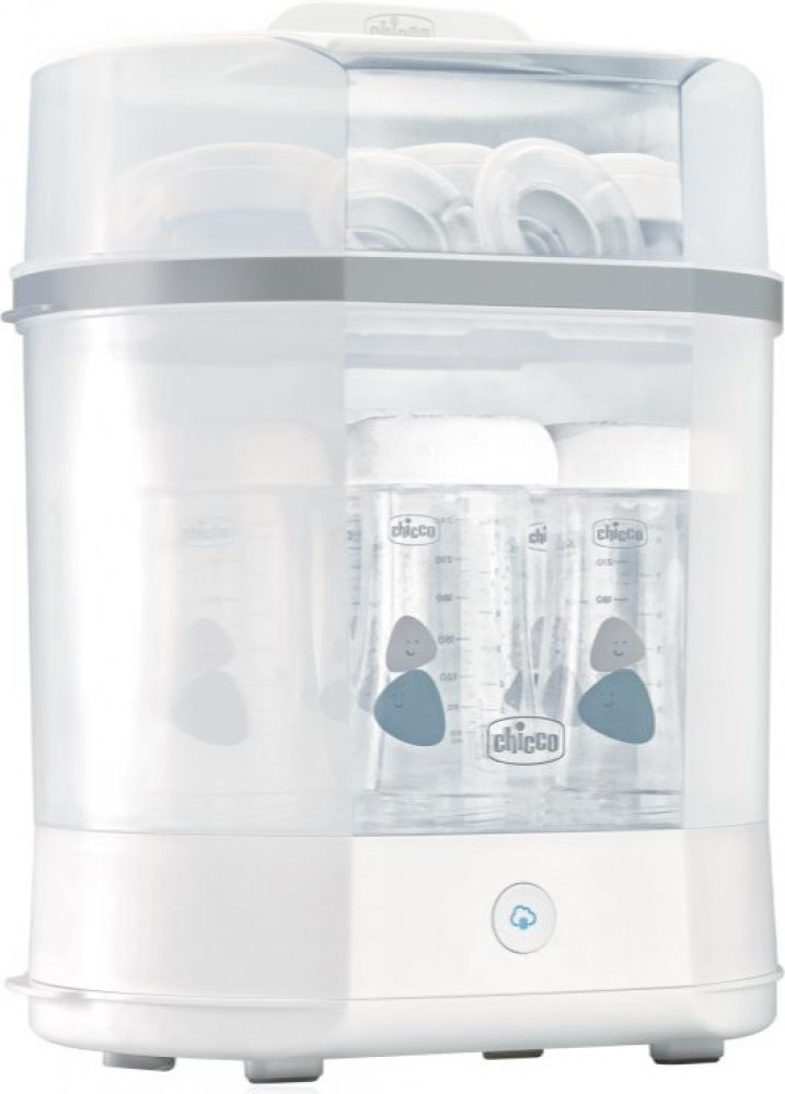 Intuitivní parní sterilizátor se speciální nádobkou pro rychlou dezinfekci v mikrovlnné troubě.