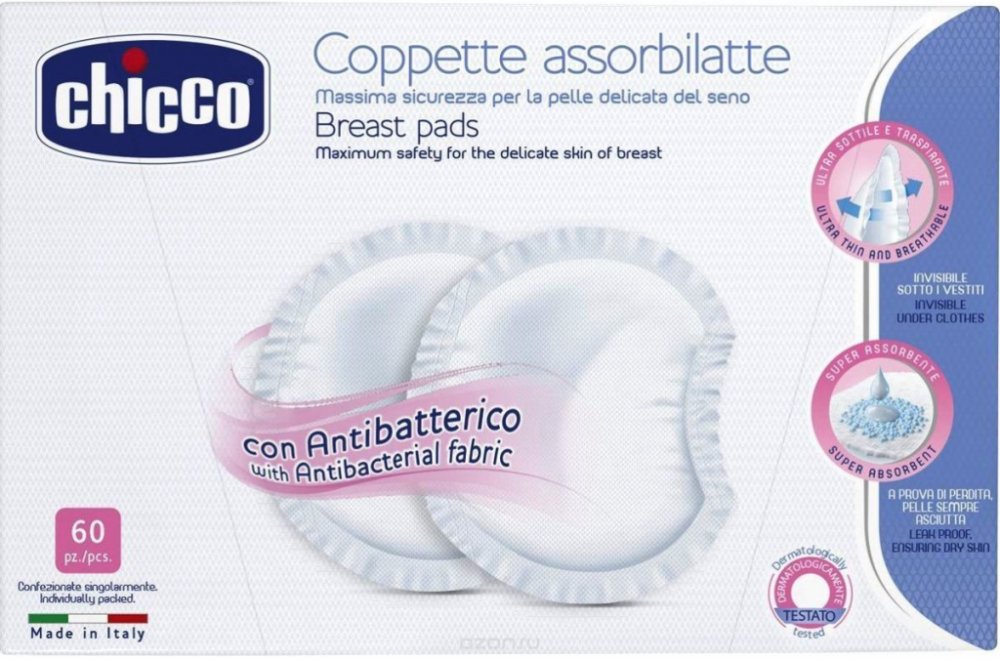 Chicco tampony do podprsenky antibakteriální 60ks