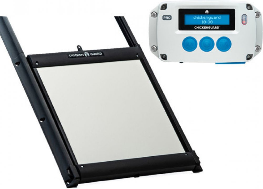 Chicken Guard Pro má velice výkonný motor, který dokáže zvednout až 2 kg. Součástí zařízení je také bezkontaktní snímač polohy dvířek. Přístroj je vybaven velice odolným pouzdrem, a tak zajišťuje perfektní ochranu při extrémních povětrnostních podmínkách až do teploty -20°C. Všechny potřebné informace o nastavení jsou přehledně znázorněny na dvouřádkovém LCD displeji. LCD displej přejde po určité době nečinnosti do "režimu spánku", aby se zvýšila životnost displeje. Zařízení znovu "probudíte" stisknutím tlačítka MENU. Pro nastavování programů slouží extra velká tlačítka, aby bylo možné je ovládat i v rukavicích.
