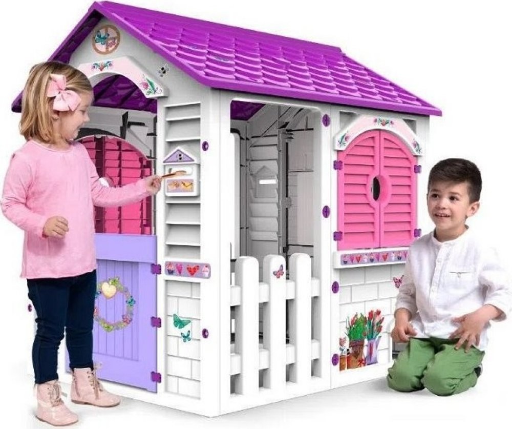 Moderní domeček na zahradu z kvalitního plastu , vyvedený v pastelových barvách. Nemá žádné ostré hrany, proto je zcela bezpečný i pro nejmenší děti. "Krásný domek" má fialová vrátka a sedlovou střechu, otevíratelné okenice a květinovou výzdobu . Výhody domku: pro vnitřní i venkovní využití, snadná montáž, otevírací okenice s otvorem, vstupní vrátka, pec v zadní části domku poštovní schránka, sam...