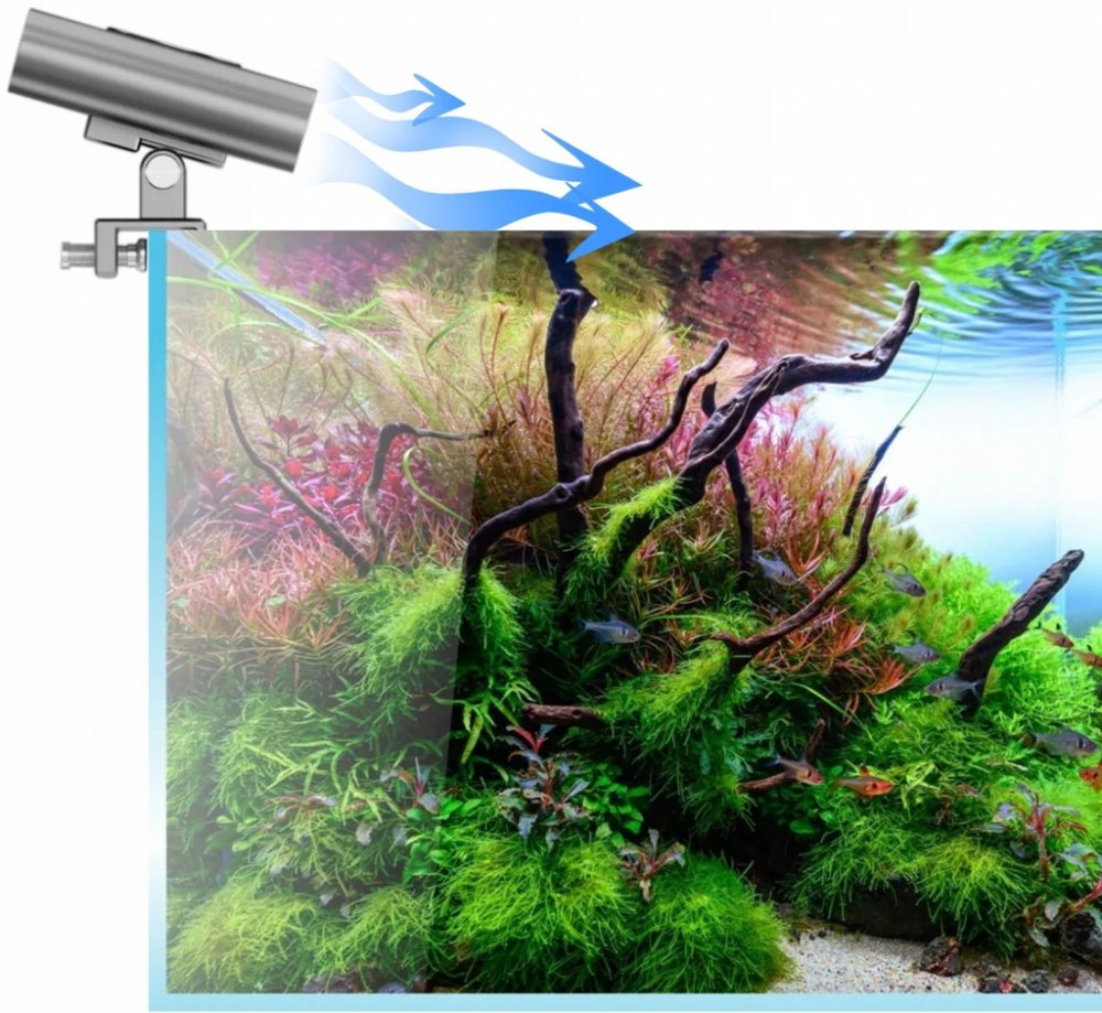 Každý akvarista se setkává s problémem teplé vody během letních veder, které jsou rok od roku stále více obtěžující. Zvýšení teploty v nádržích často končí smrtí korálů, rostlin a některých druhů ryb. Ventilátor vynucením pohybu vzduchu odstraňuje ohřátý vzduch a nahrazuje jej čerstvým, čímž snižuje teplotu vody až o 5 °C. Odkud pochází horký vzduch nad akváriem? Je to jednoduché. Voda ztrácí teplotu díky svému povrchu. Dodávejte proud studeného vzduchu nad akvárium a voda se ochladí. Stejně jako foukáte na horký čaj.