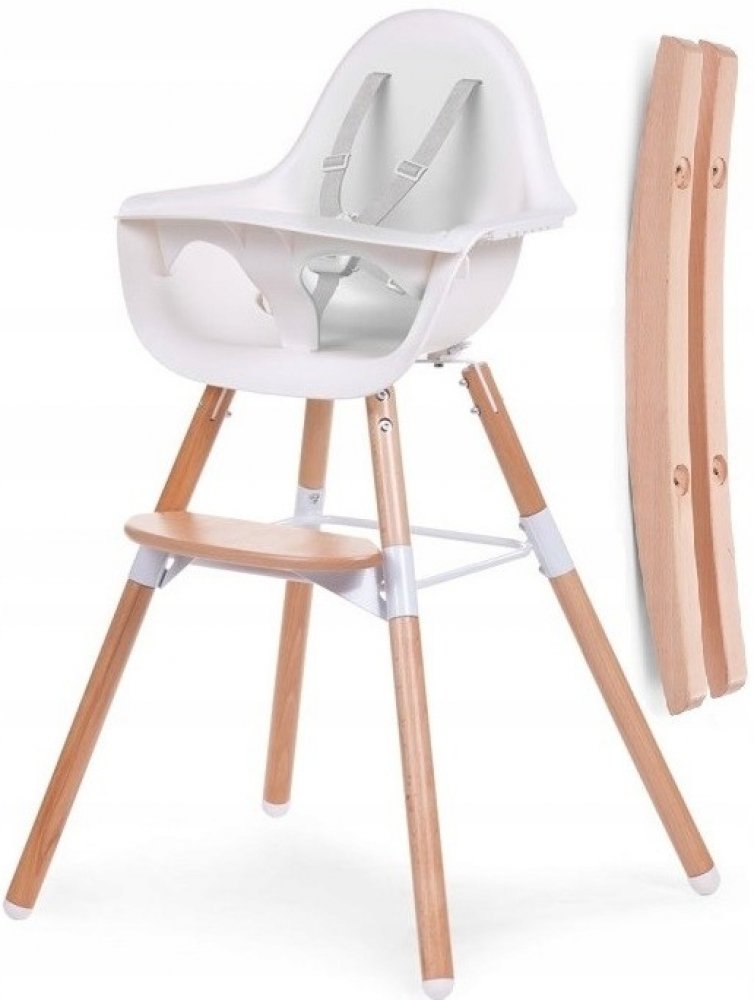 Unikátní židlička s otočným sedákem umožňuje rodiči dítě usadit i krmit ve třech různých polohách bez nutnosti manipulace s celou židličkou. Zatáhnutím za západku sedák snadno otočíte o 90° či 180° stupňů. Moderní židlička 2v1 v kombinaci bukového dřeva a bílého plastu nabízí 2 výškové varainty použití - ke stolu standardní výšky 75 cm a k dětskému stolku výšky 50 cm. 5-bodový bezpečnostní pás, odnímatelné madlo a opěrka nohou zaručují pohodlné a bezpečné sezení dítěte v židličce. K židličce je možné dokoupit samostatně prodávaný jídelní pult, polstrovanou textilní sedací podložku a úložný košík. Vhodné pro děti od 6 měsíců do 6 let. Používání židličky je vhodné od doby, kdy dítě umí samostatně sedět bez opory. Rozměry: 56 x 56 x 94 cm