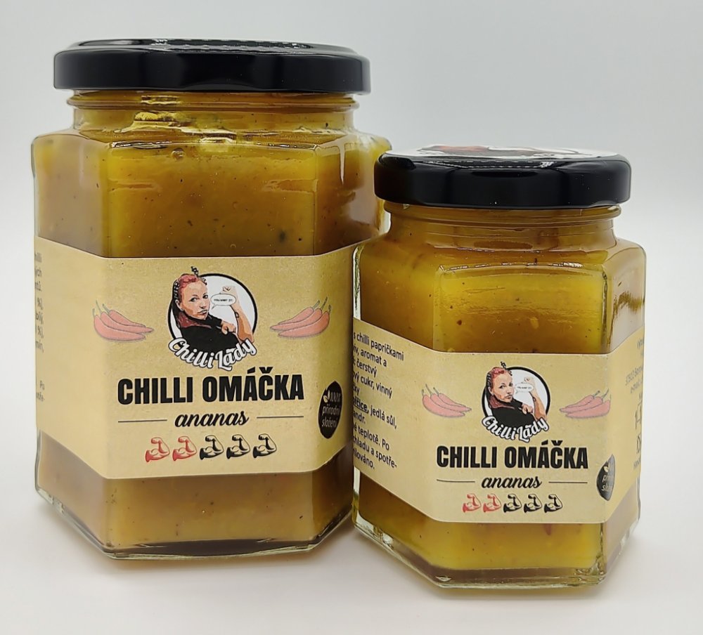 Ananasová omáčka s chilli papričkami bez chemických barviv, aromat a konzervantů.