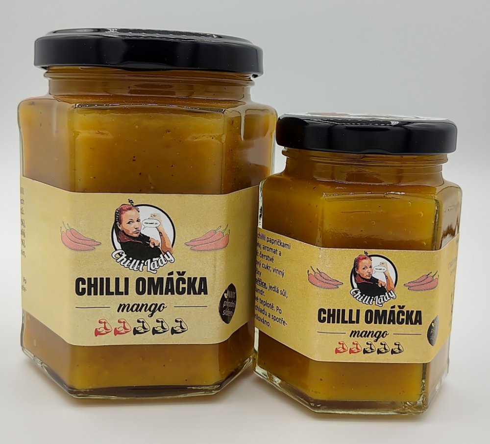 Mangová omáčka s chilli papričkami bez chemických barviv, aromat a konzervantů.