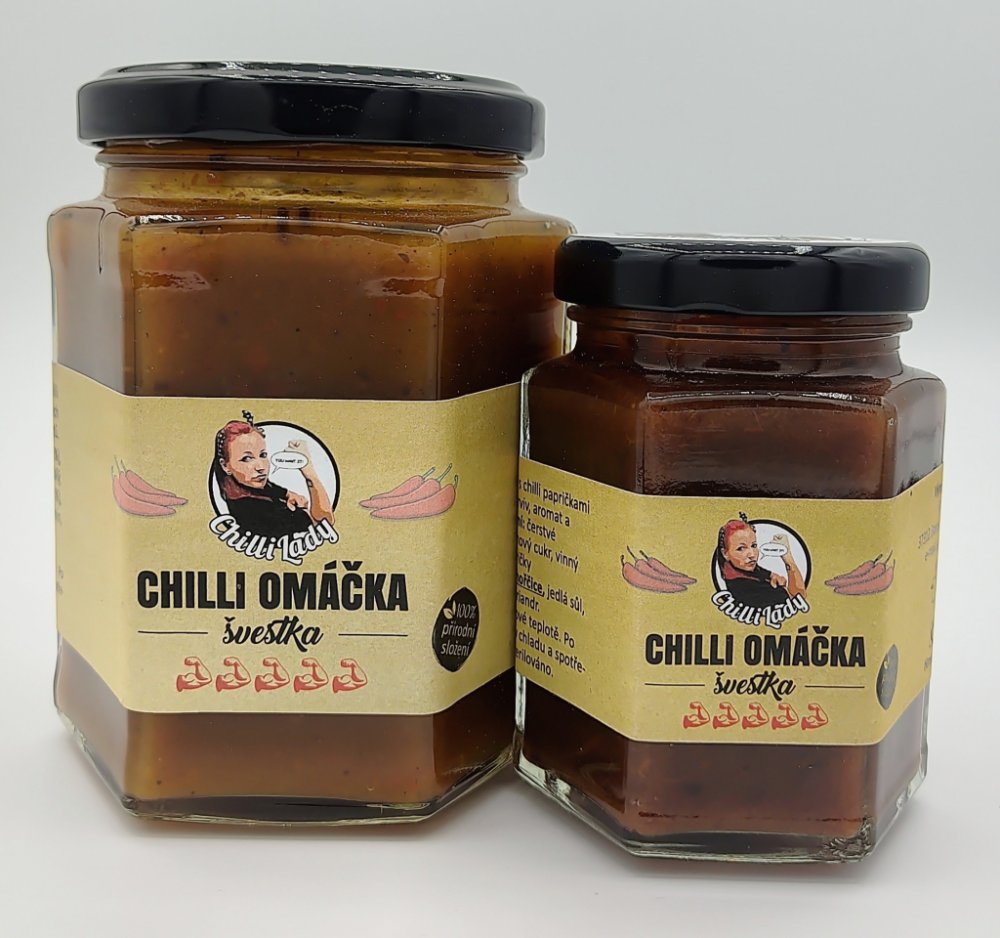 Švestková omáčka s chilli papričkami bez chemických barviv, aromat a konzervantů.