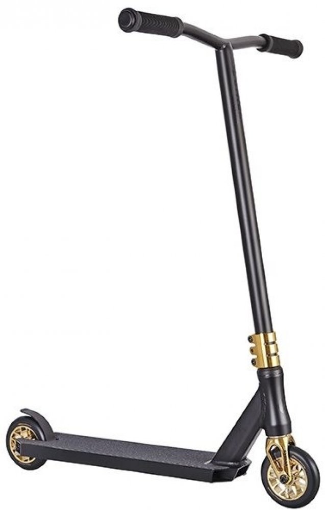Chilli Reaper Crown je skvělá všestranná prémiová freestyle koloběžka v černé barvě a zlatými doplňky s bezkonkurenčním poměrem cena / výkon. Je určená pro začátečníky i středně pokročilé jezdce.