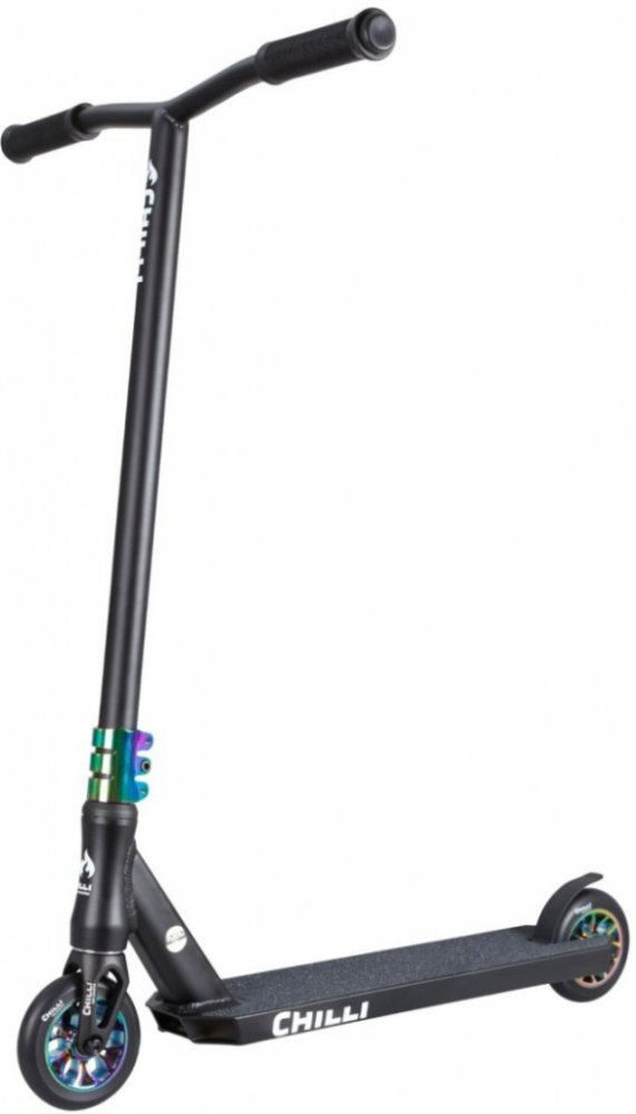 Chilli Reaper Grim Neochrome je skvělá všestranná prémiová freestyle koloběžka v černé barvě a neochromovými doplňky s bezkonkurenčním poměrem cena / výkon. Je určená pro začátečníky i středně pokročilé jezdce.