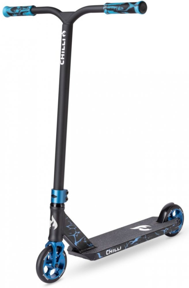 Chilli Reaper Reloaded V2 Blue je špičková freestyle koloběžka v modro-černém barevném provedení. Design koloběžky je opravdu vyladěný a nepřehlédnutelný. Je ideální jak pro běžné jezdce, pokročilé jezdce, tak i pro profíky.