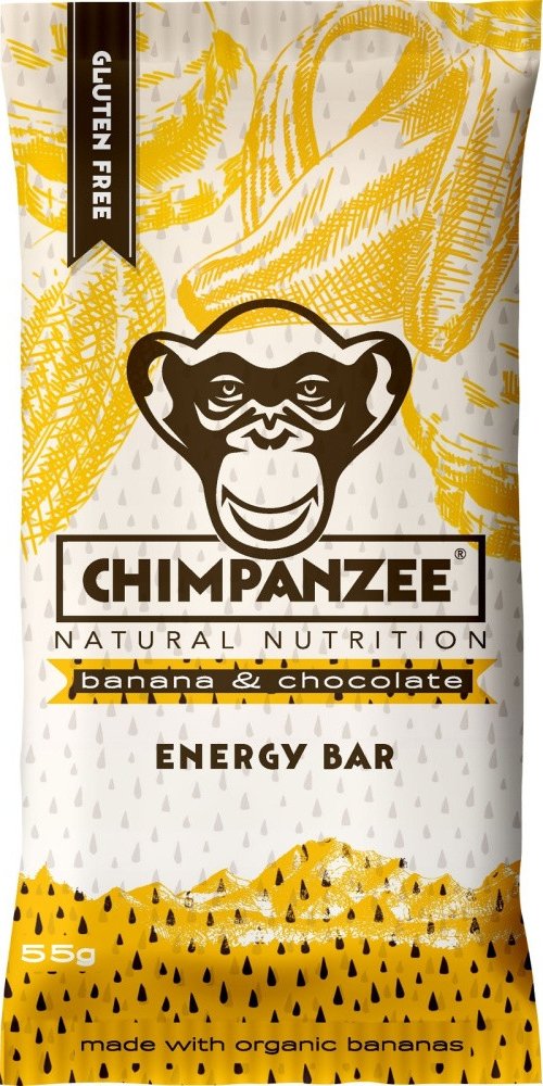 Chimpanzee Energy bar banán a čokoláda obsahuje mix komplexních sacharidů, vysoký obsah vlákniny a bílkovin.