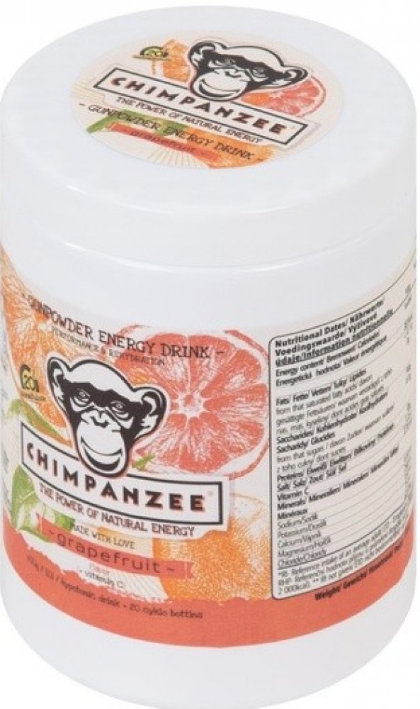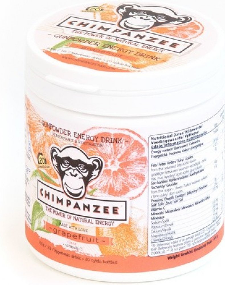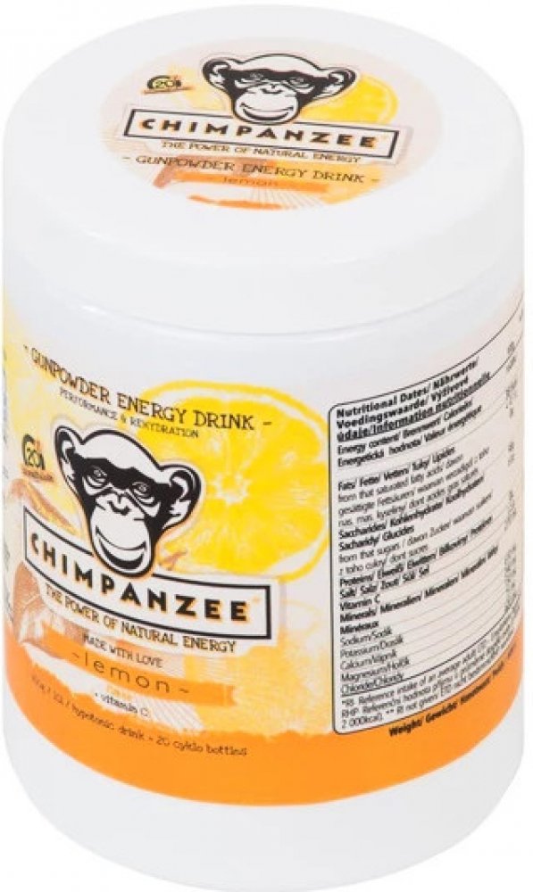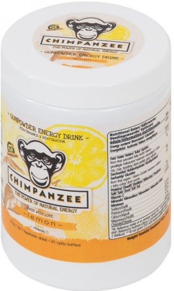 Jedná se o energetický, isotonický nápoj s unikátním složením. Energetický nápoj kombinuje nízkomolekulární a vysokomolekulární sacharidy v optimálním poměru. Díky tomu je výrazně omezen výkyv hladiny krevního cukru v průběhu výkonu. Energetický nápoj je obohacen ionty sodíku, draslíku, hořčíku a vápníku. Použité suroviny jsou v přírodní formě. Chimpanzee energetický nápoj Vám zajistí dostatek energie, hydratace a rychlou svalovou regeneraci.