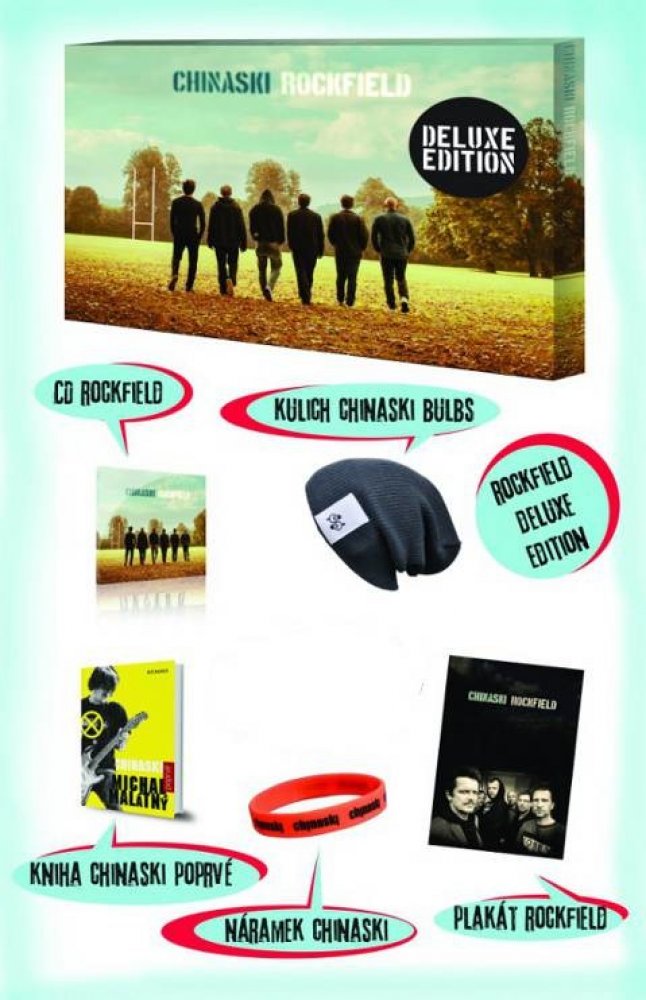 Deluxe edice stále aktuálního alba „Rockfield“ populárních Chinaski přináší kromě CD se zmíněným albem i knihu Chinaski poprvé, plakát ve formátu A3, náramek a pletenou čepici, která jistě přijde v tomto období vhod. ˘