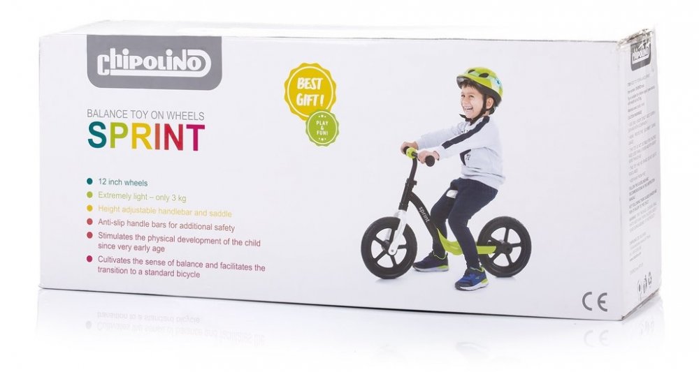 Dětské odrážedlo značky Chipolino s názvem Sprint je navrženo pro začínající cyklisty, usnadňuje přechod na standardní jízdní kolo a stimuluje fyzický vývoj dítěte od velmi raného věku. Rozvíjí bezpečným způsobem koordinaci a cit pro rychlost, pomáhá dítěti udržet rovnováhu a jistotu, která plyne z neustálého kontaktu dětských nohou se zemí. Dítě se při jízdě učí udržovat rovnováhu, procvičuje různé pohyby (zatáčení vlevo a vpravo) a ovládá rychlost v závislosti na úrovni připravenosti. velmi lehký rám 12" kola s plnými pneumatikami schůdky na obou stranách pro opření nohou při jízdě,balancování výškově nastavitelné sedadlo nastavitelná řídítka protiskluzová koncovka řítítek (gripy) zvonek Rozměry: 86 x 38 x 86 cm. Hmotnost odrážedla: 3,1 kg. Tato hračka byla vyrobena v souladu s požadavky evropských směrnic a norem v souvislosti s bezpečností hraček. Upozornění: Nepoužívejte v silničním provozu. Doporučujeme používat ochranné prostředky např.přilbu.