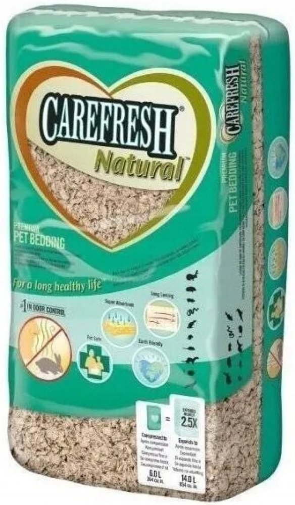 Upozornění: Carefresh je netoxický, ale v případě požití mimořádně velkého množství podestýlky nebo při pozorování změn v množství pitné vody konzumovaného krmiva se poraďte s veterinářem.