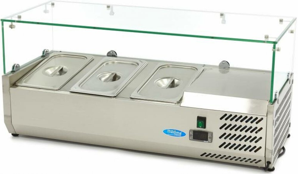 Chladicí nástavba / stolní saladeta Maxima 95 cm je ideální pro profesionální kuchyně, které potřebují mít připravené suroviny ihned po ruce. V perfetkním designu kombinuje nerez s elegantním skleněným krytem, což poskytuje moderní prezentaci a snadný přístup k ingrediencím. Je vybavena digitálním regulátorem teploty (Dixell), který umožňuje p...