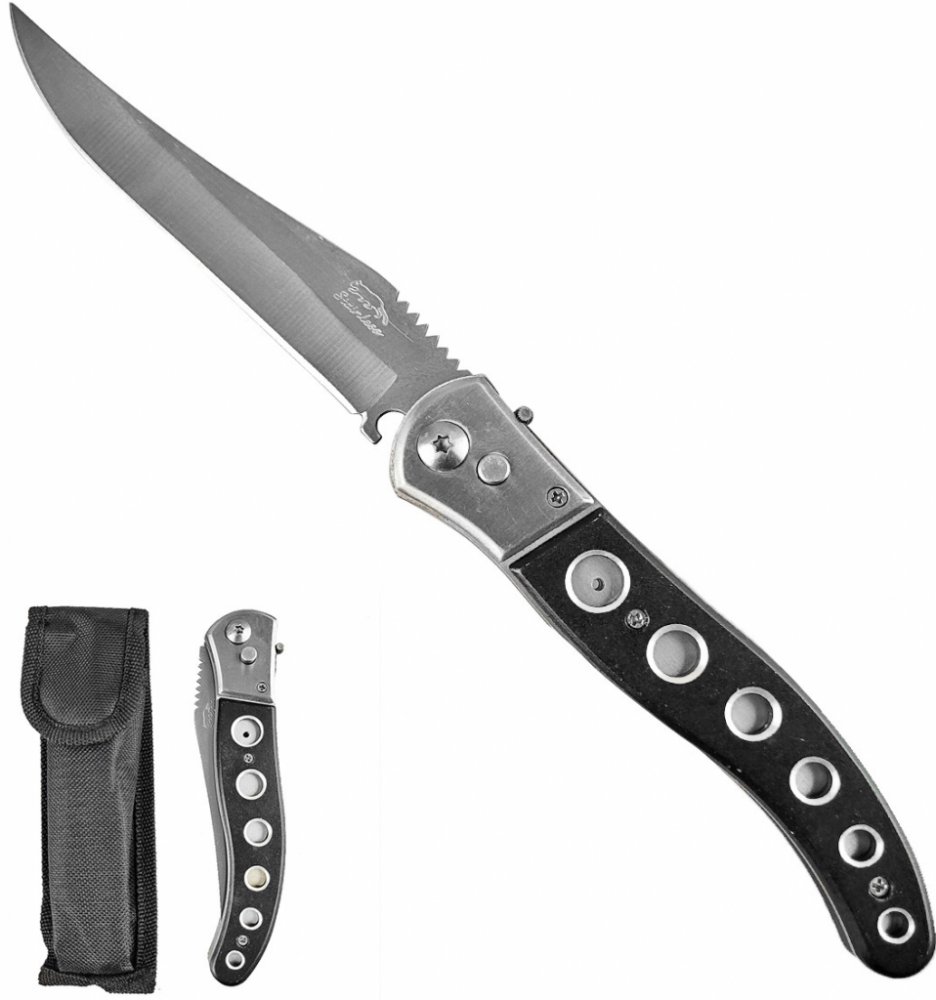 Opravdu veliký vystřelovací nůž - nevšední záležitost nejen pro fajnšmekry! ;-) Vystřelovací nůž "GODZILLA BLACK" nemá svůj název jen tak náhodou. Oproti jiným kapesním nožům totiž po otevření dosahuje délky pevných nožů - a sice 26 cm! Rázem se před Vámi sestrojuje nůž s dlouhou čepelí, se kterou si krajíc "neupižláte", ale velice elegantně a jednoduše...