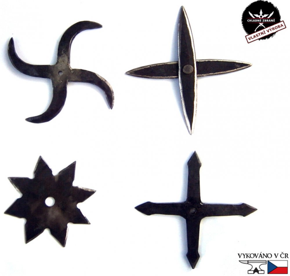 Jedná se o naprosto historicky věrné kopie vrhacích hvězdic, které jsou vyrobeny ručně na zakázku podle historických předloh a rozměrů. Takové nenajdete nikde jinde v České republice a pravděpodobně i ve střední Evropě. V rukách se Vám tak ocitne jedinečný umělecký kousek, v kterém je uložen pot a práce uměleckého kováře i duch starověkého Japonska. Díky kovanému materiálu jsou hvězdice těžší a také razantnější než sériově vyráběné "ARROW" či "NATTY".