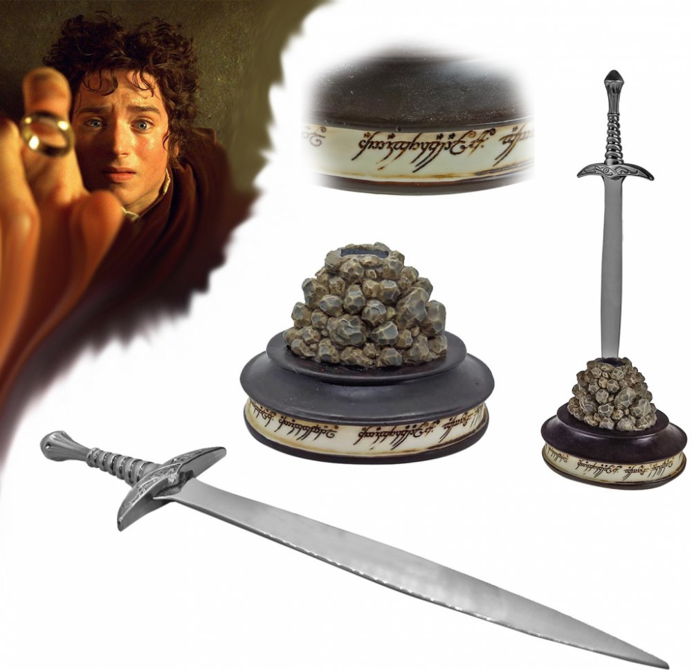 Zmenšenina legendárního meče, jímž se ohání Bilbo a později Frodo Pytlík ve filmovém zpracování Pána prstenů a také Hobita. Jedná se o krásný doplněk do sbírky, který nezabírá moc místa a dodá Vašemu příbytku tu správnou fantasy atmosféru.