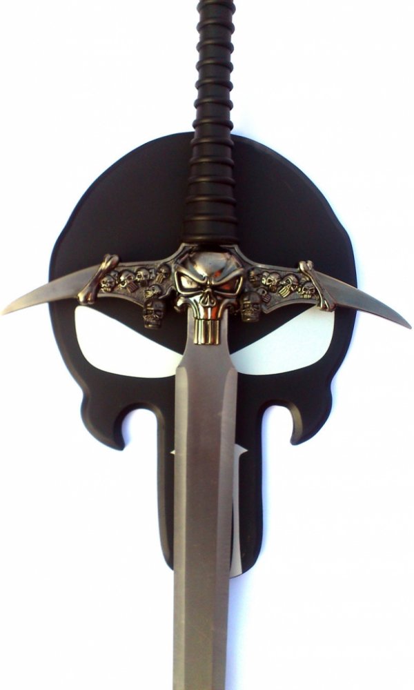 Tento veliký meč "NECROMANT" Vám doručíme i s mohutným punisherovým dřevěným podnosem - nyní exlusivně v černém necromantském stylu, díky kterému ho můžete mít vystavený na stěně v pokojíku, obýváku či chodbě.