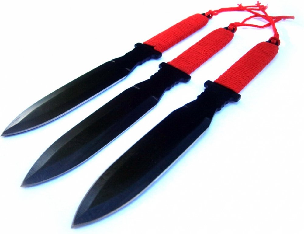Vrhací nože jsou vyrobeny jednoho kusu korozivzdorné oceli a drží se velice pohodlně. Rukojeť je dlouhá a obmotaná tkaninou, takže padnou příjemně do ruky (viz foto). Čepele jsou dlouhé a ostré, nebrání Vám tedy nic v tom, abyste tyto nože použili i jak...