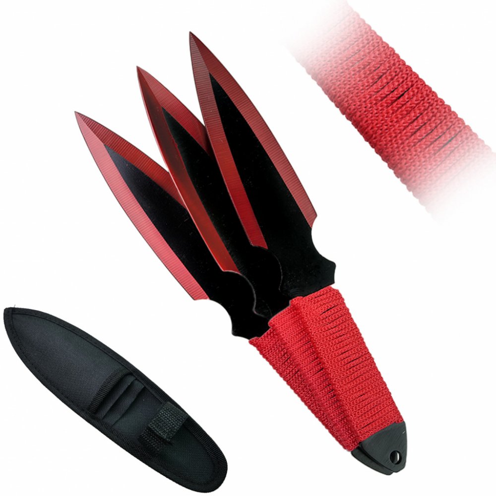 Vrhací nože "RED RAIN" - 3ks s pouzdrem